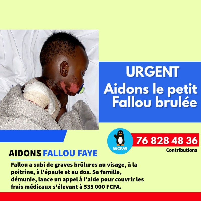 Le petit Fallou a subi de graves brûlures au visage, à la poitrine, à l'épaule et au dos.