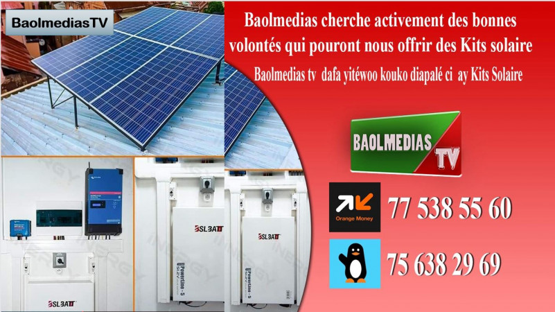 BaolmediaFM/TV cherche activement des bonnes volontés qui pourront nous accompagner dans l'acquisition de kits solaires.. Radio Baolmedias FM 1ère Radio Digital du Baol [ LIVE] sur Twitter.Youtube Twitch Facebok Adresse: Touba Mbacke Niary Baaye Fall Je souhaite votre soutien à travers un partenariat fort pour un Baol nouveau. Faites vos dons via ce numéro de wave 75 638 29 69 et d'orange money : 771774370 / 775385560